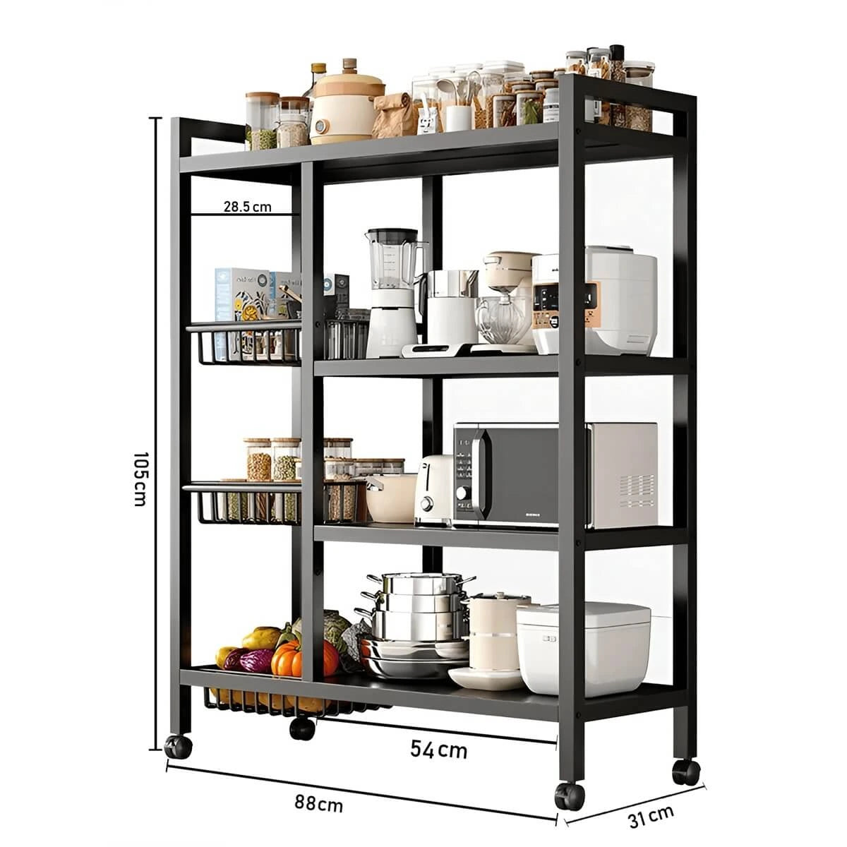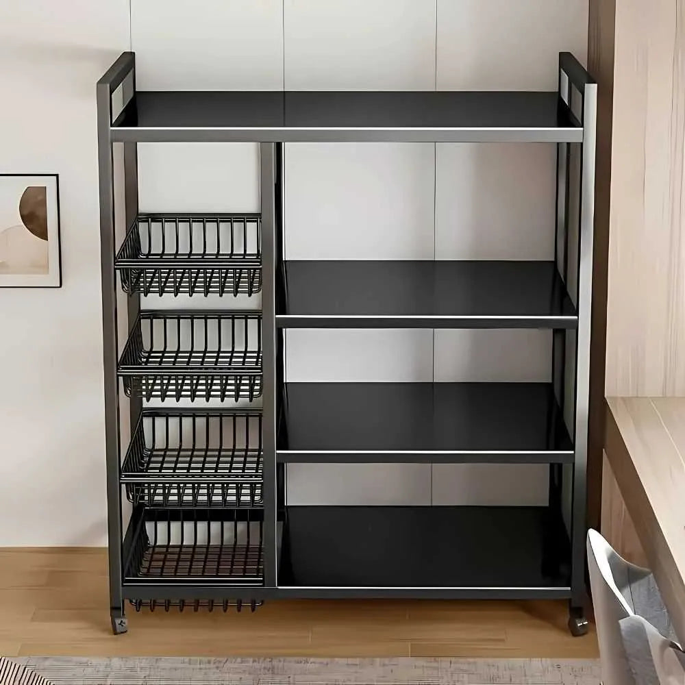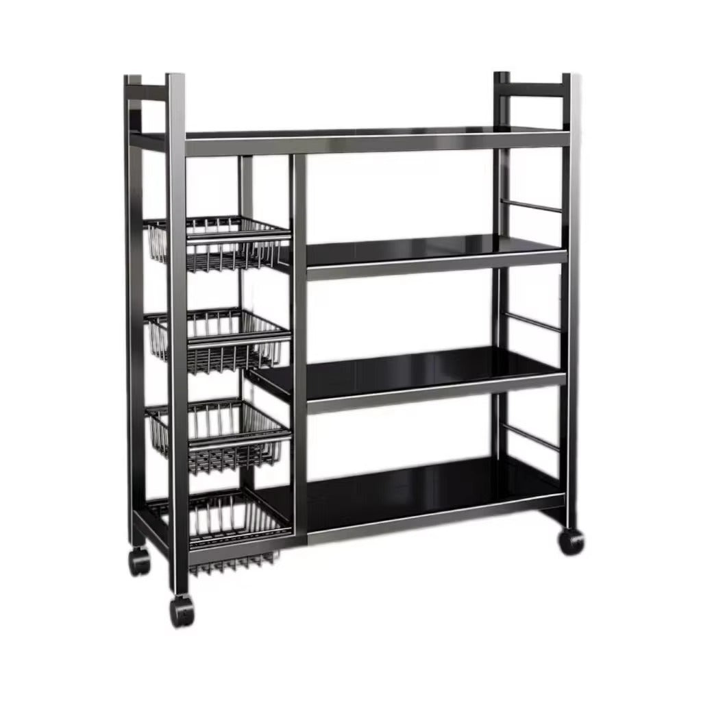 Chariot à fruits et légumes en métal avec étagère mobile pour micro-ondes