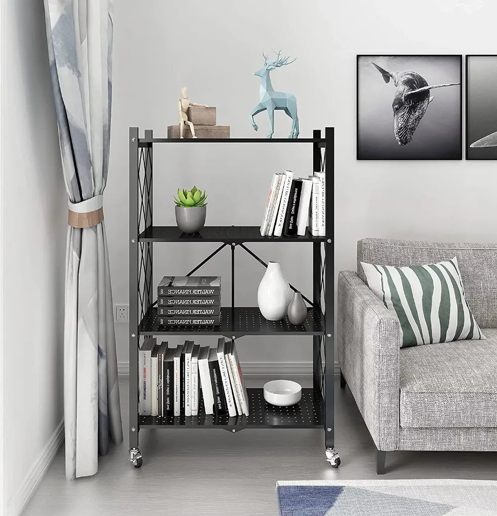 Étagère de rangement 4 étages cuisine pliable avec roulettes