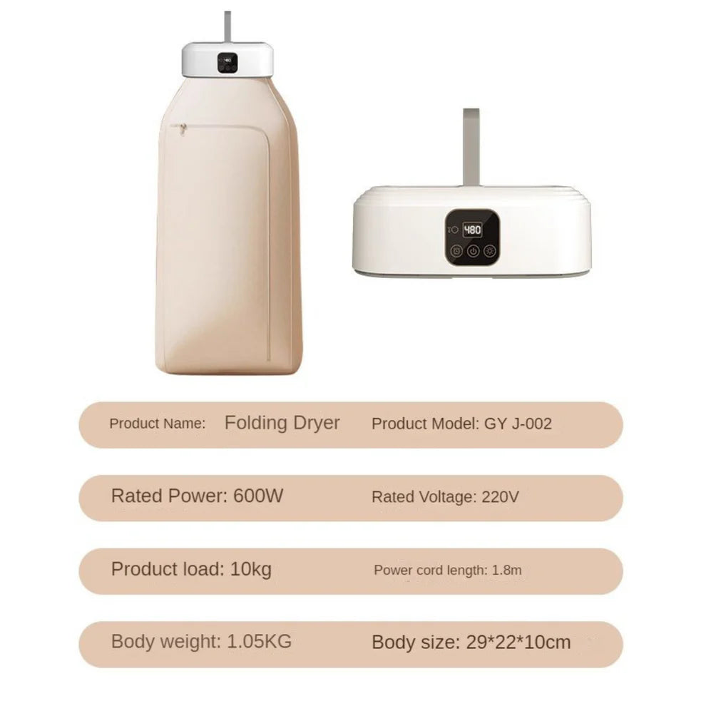 Sèche-linge haute puissance de 600 W, séchant efficacement les vêtements petits et fins en seulement 30 minutes. Sûr et efficace pour un usage quotidien.